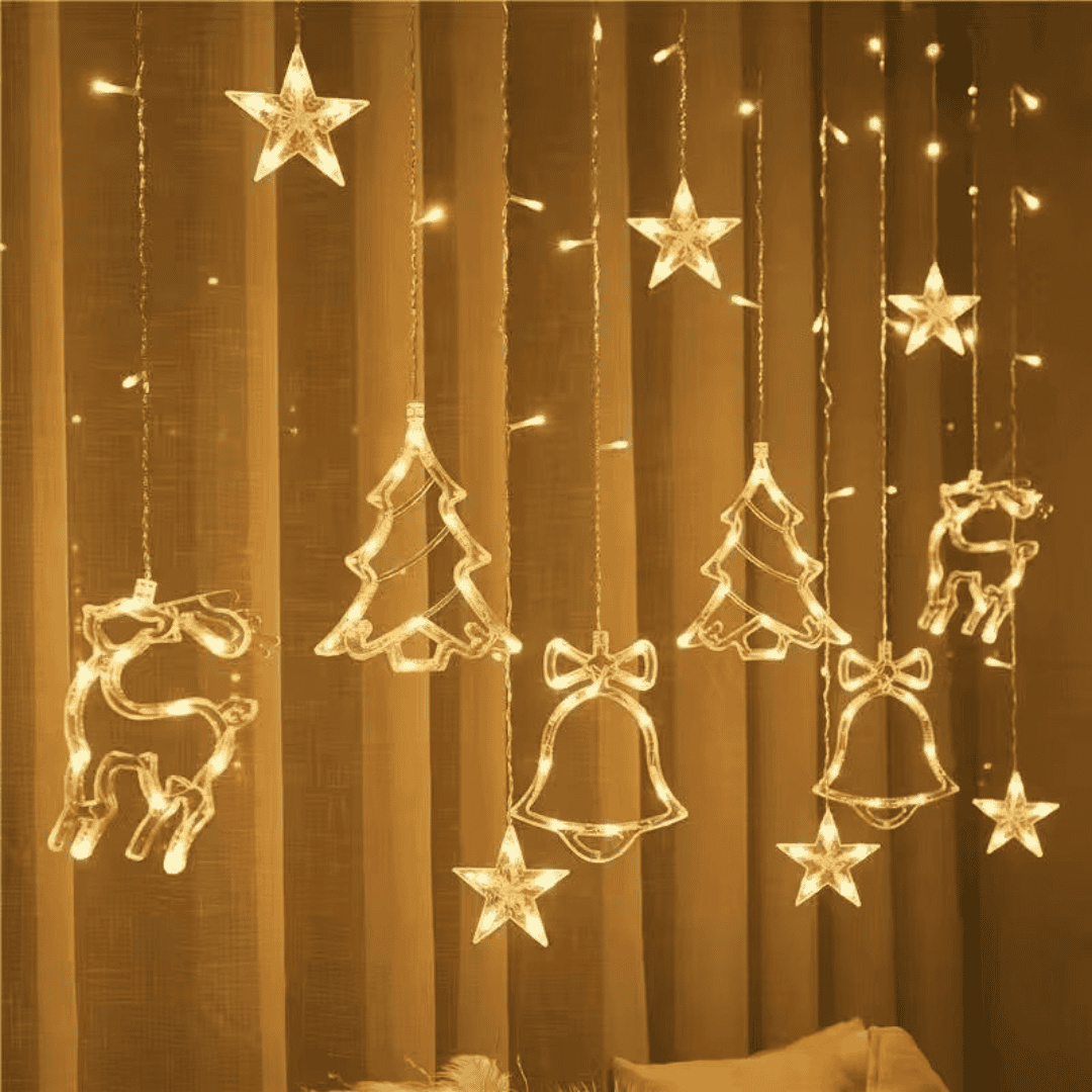 You can hang these curtain lights using hooks, clips, or adhesive fasteners. They work well on walls, windows, door frames, and headboards, instantly transforming your space into a glowing festive display.