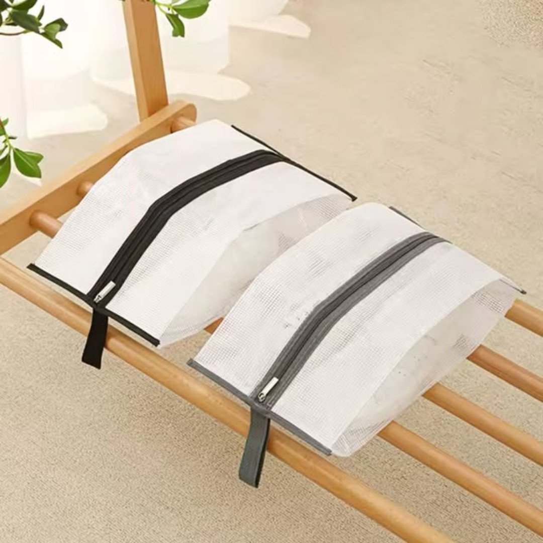 The Mesh Shoe Bag (3-Piece Set) is an essential accessory for any family that values organization and cleanliness. This Mesh Shoe Bag (3-Piece Set) is designed to protect your footwear from dust while keeping them neatly separated from clothes in your suitcase or closet. The breathable mesh fabric is the standout feature, as it allows for proper airflow to prevent the buildup of moisture and odors, ensuring your shoes stay fresh no matter where you store them.