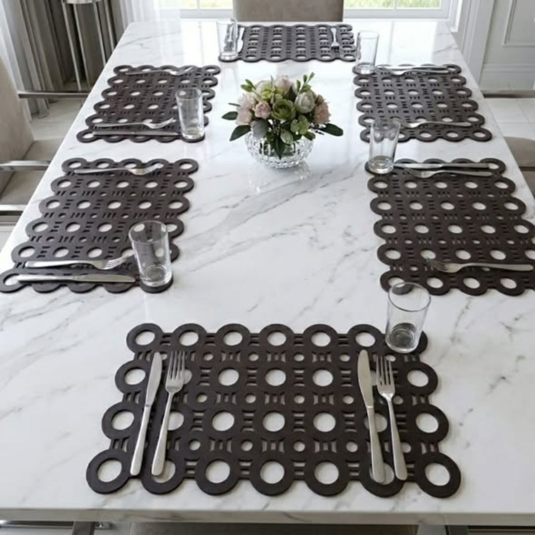 Shop Modern Geometric Placemats Set of 6 pcs for stylish dining. Heat resistant and durable. Order now in Nairobi.
