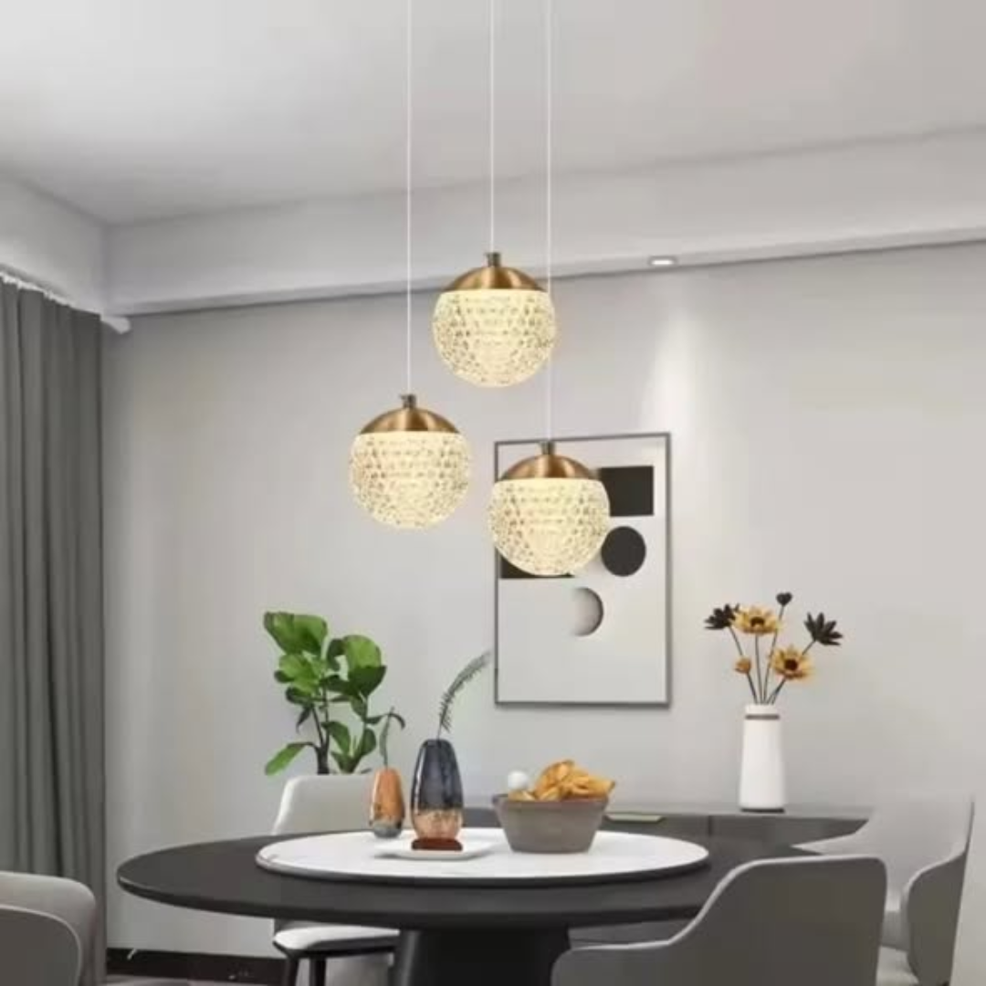 Transform your ceiling into a display of contemporary luxury with the Modern Gold Acrylic Ball Pendant Light. This Modern Gold Acrylic Ball Pendant Light features a contemporary design characterized by a luxurious gold finish and elegant acrylic ball accents. The Modern Gold Acrylic Ball Pendant Light is built on a durable iron frame, providing a stable and high-quality structure that adds a sophisticated look to any interior. Ideal for living rooms, bedrooms, or dining areas, this stylish hanging light provides the perfect balance of warm ambient lighting and modern artistic flair.