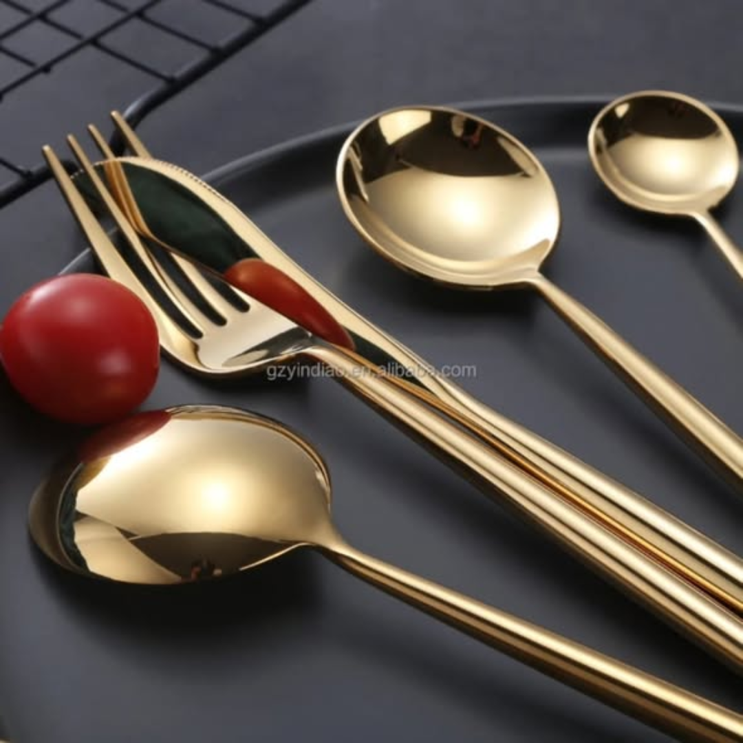 Elevate your dining experience with the strikingly elegant Modern Luxury Cutlery Set. This set is designed for those who believe that every meal should be a sophisticated event. The Modern Luxury Cutlery Set is crafted from high-grade stainless steel, ensuring a professional weight and long-lasting durability. Featuring a stunning Gold matte polish, this Modern Luxury Cutlery Set brings a touch of opulence and contemporary style to your dining table. Whether you are hosting a formal dinner party or enjoying a quiet family meal, this set provides the polished look that moves your home aesthetic to the next level.