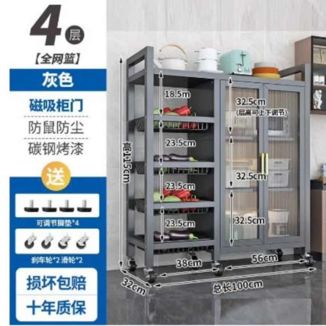 Multi-Functional Kitchen Storage Rack with Visible Doors and Metal Handles