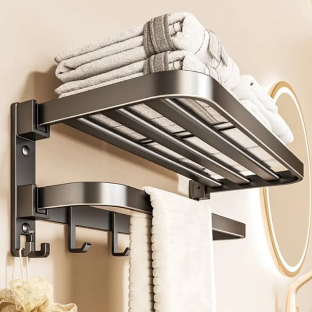 The Multifunctional Aluminum Bath Towel Shelf is a high-performance Storage Rack Set that brings industrial durability to your bathroom. Crafted from lightweight yet incredibly strong aluminum, this Bathroom Storage Rack is naturally resistant to rust and corrosion. The multifunctional design provides space for both folded towels on the top shelf and hanging towels on the bar below, ensuring all your bath linens stay dry and organized in one central location.