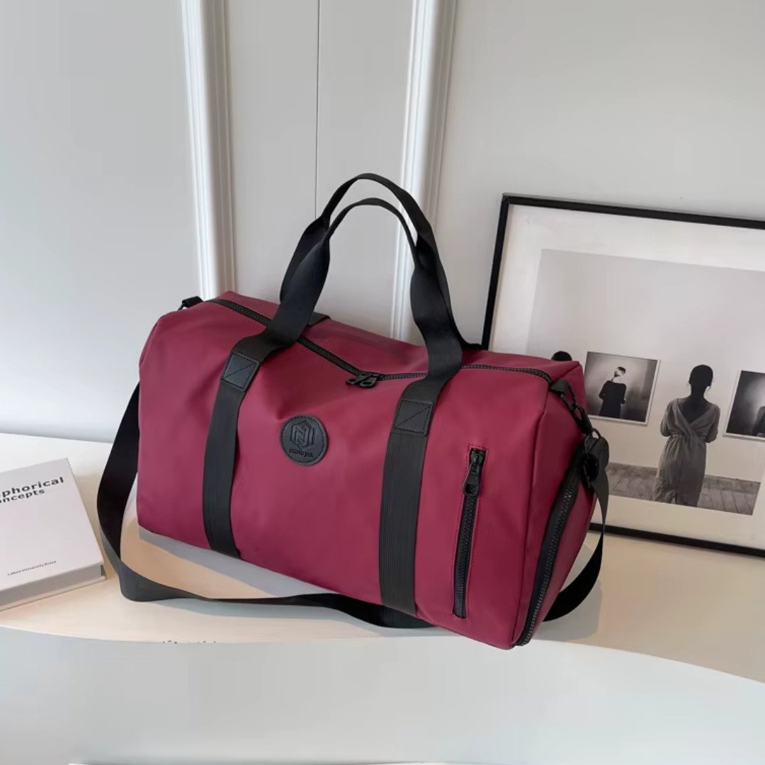 Multifunctional Travel Gym Duffel Bag with Shoe Compartment – Wine Red & Grey (42x18x32 cm)