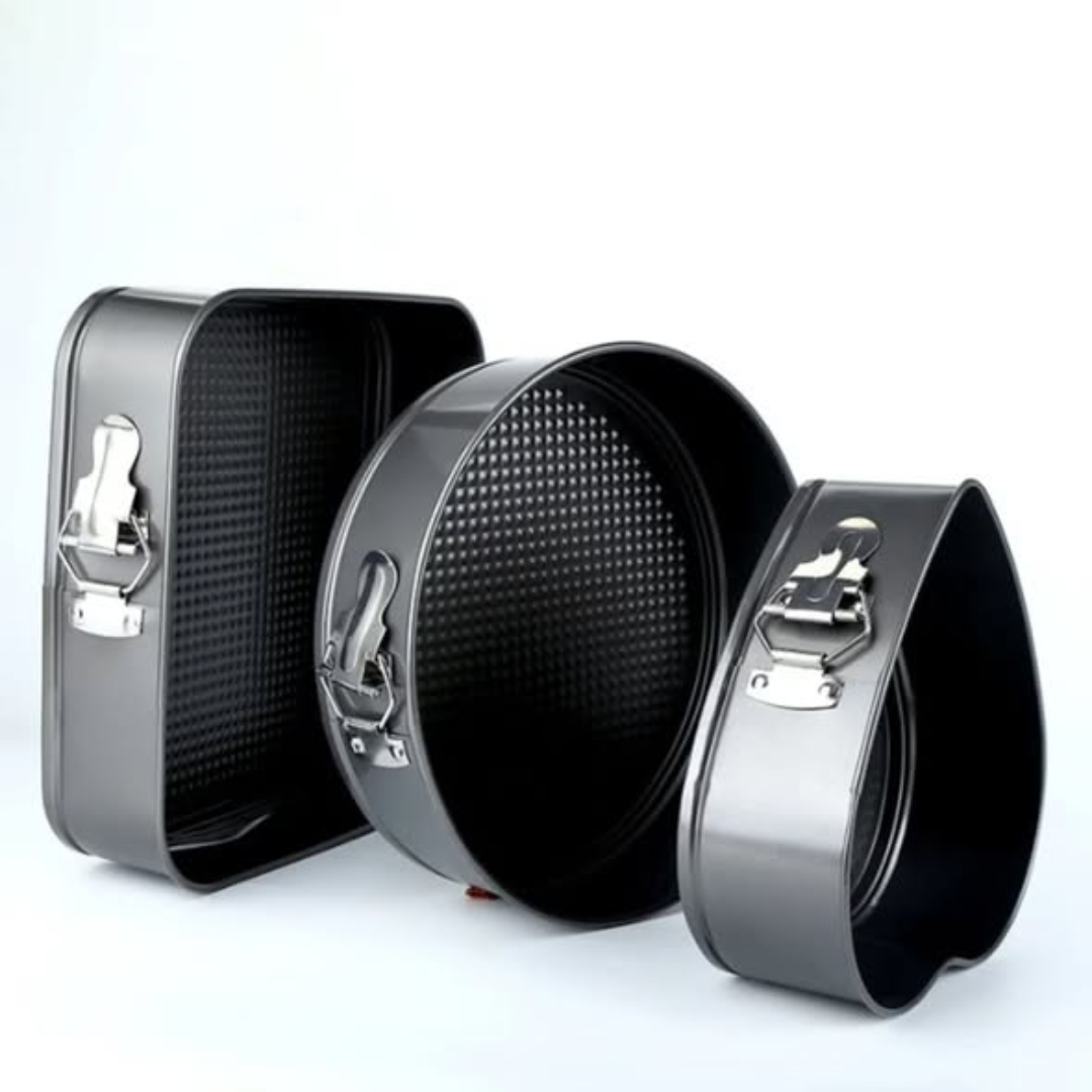 These “mixed shape baking tins” are built from durable, heavy-duty materials that provide even heat distribution for a consistent bake. The springform or loose-base design often found in these sets makes transferring delicate sponges a “magic” and stress-free experience. Whether you are baking a tiered wedding cake or a simple batch of brownies, this 3-piece set offers the variety and performance every home baker needs. The “Nonstick” surface requires less oil or butter for greasing, making your treats a slightly “healthy” and professional-looking choice.