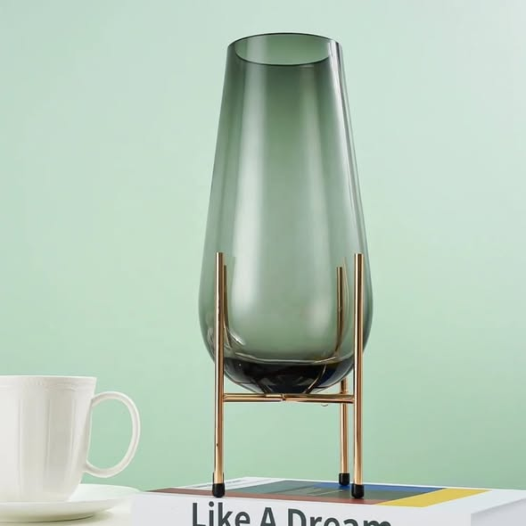 Integrated Metallic Stand: Provides structural interest and elevates the vase for better visibility.