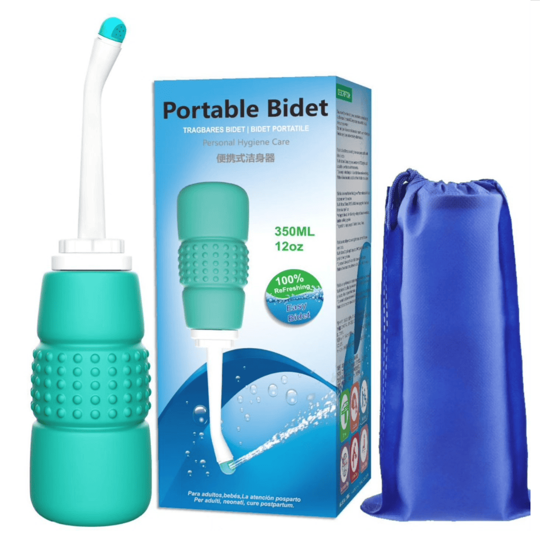 Portable 350ml bidet with storage cloth and box.