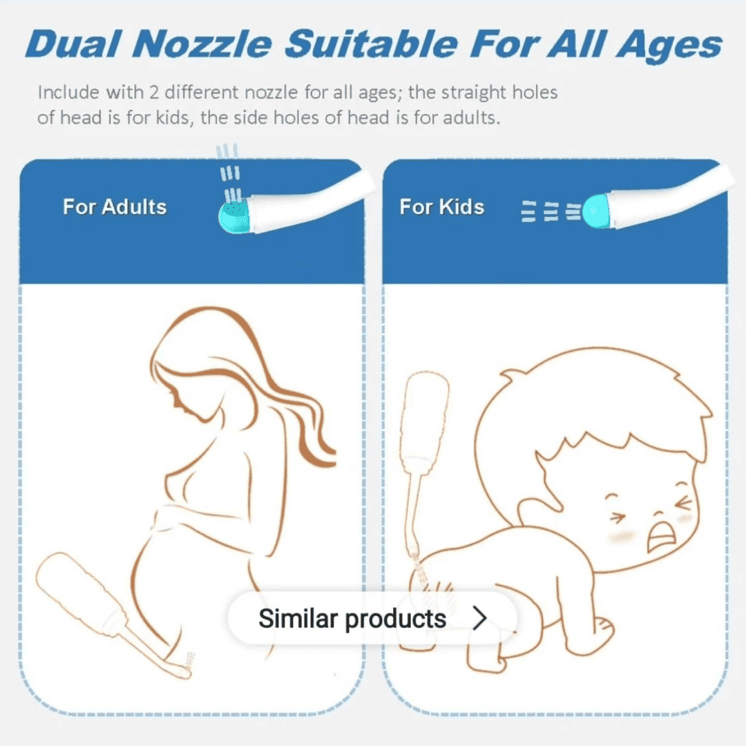 Dual nozzle design for adults and kids.