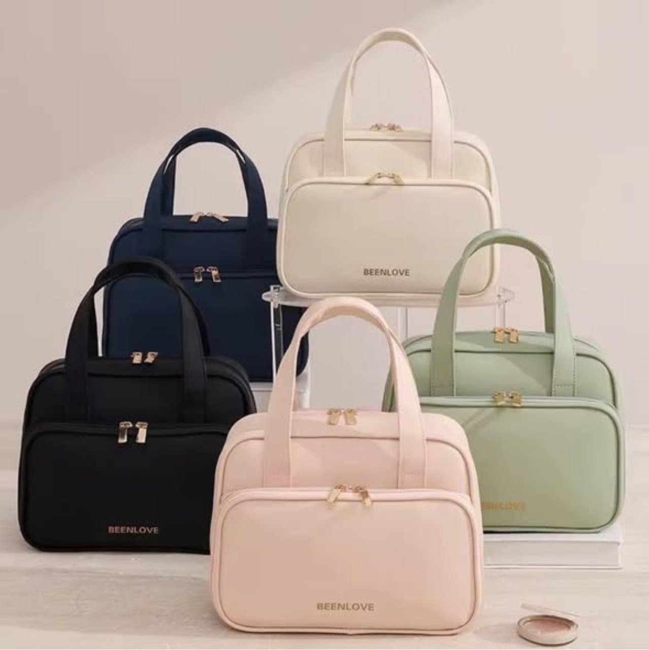 Available in beautiful colors including Navy Blue, Cream White, Black, Green, and Pink, this cosmetics bag is designed to match your personal style while keeping your beauty products secure. The smooth PU exterior resists scratches and moisture, ensuring your items stay protected, while the well-structured interior gives you enough space to store brushes, skincare, makeup, and accessories.