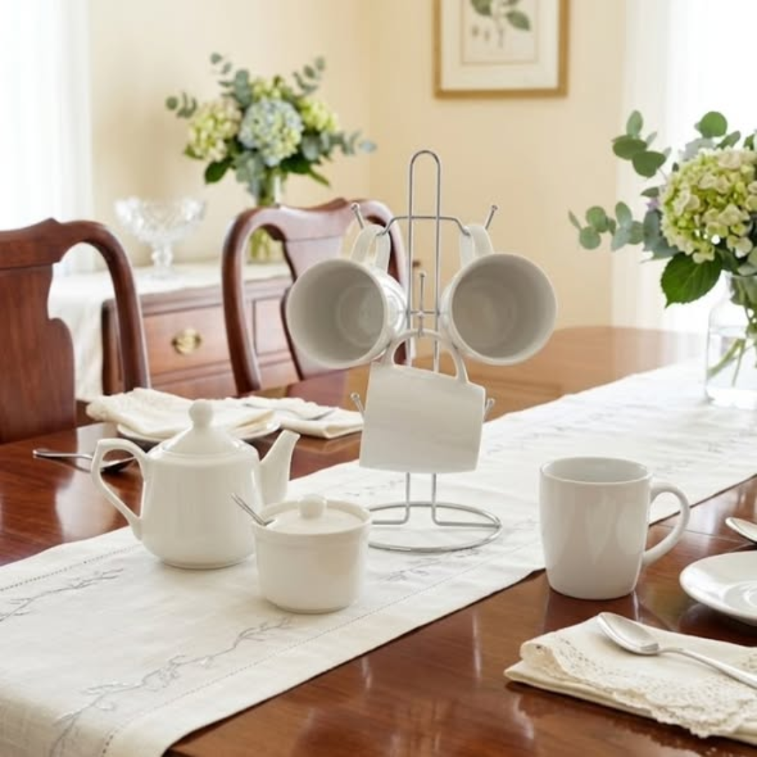High-Gloss Ceramic Finish: Pure white aesthetic that provides a clean, sophisticated look for any table.