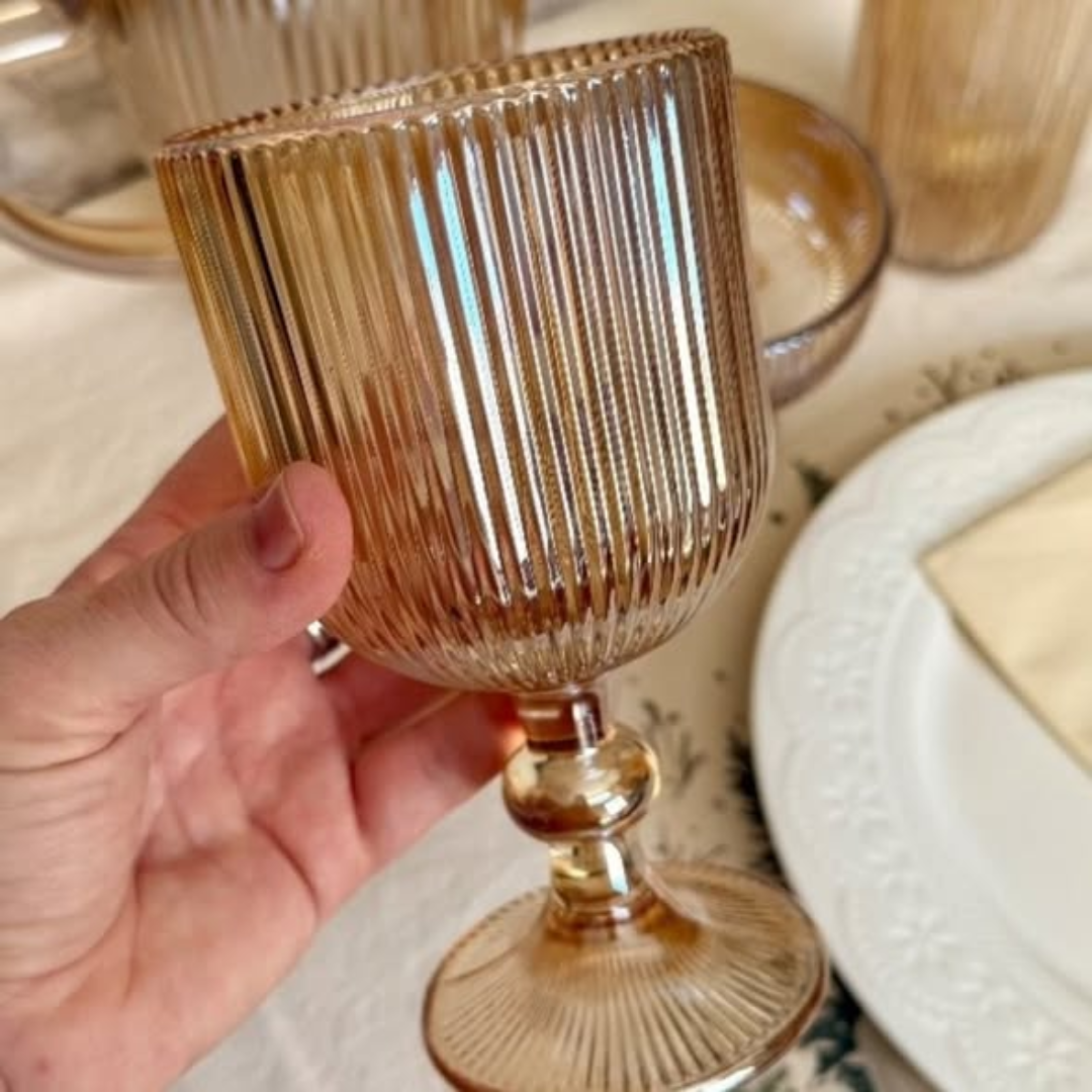Bring a touch of timeless elegance to your dinner table with our Ribbed Vintage Wine Glasses. These Ribbed Vintage Wine Glasses feature a stunning textured design that captures the light and adds a sophisticated, tactile feel to your beverage service. This Ribbed Vintage Wine Glasses 6-piece set is perfect for those who appreciate classic aesthetics paired with modern durability. With a generous 325ml capacity, these glasses are ideal for serving your favorite red, white, or rosé wines, making every pour feel like a special occasion.