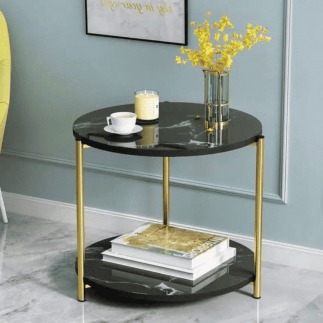 Elegant Round and Square Side Coffee Table with Marble Effect