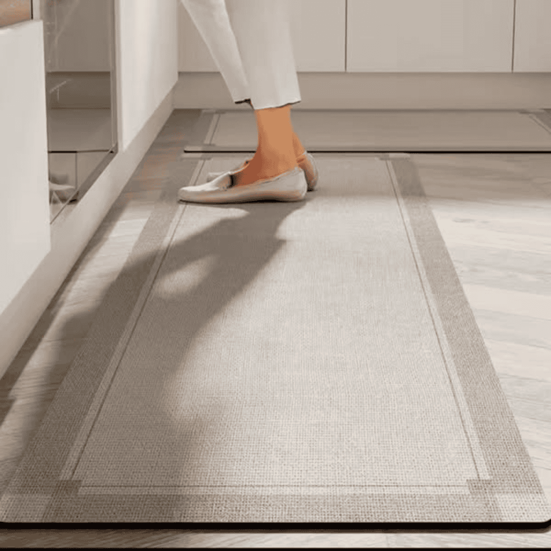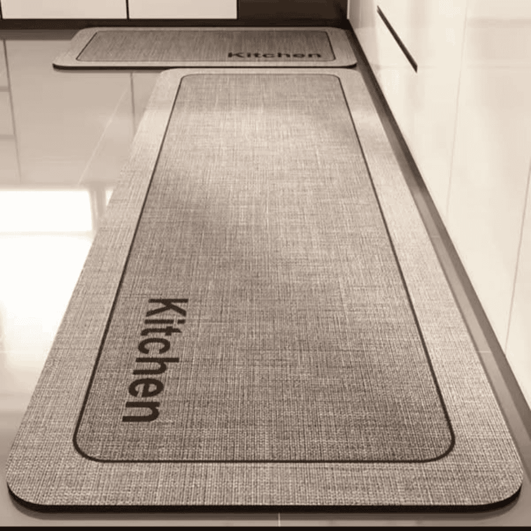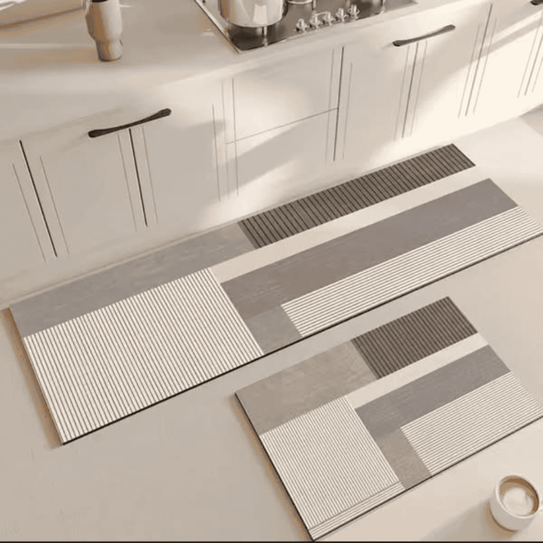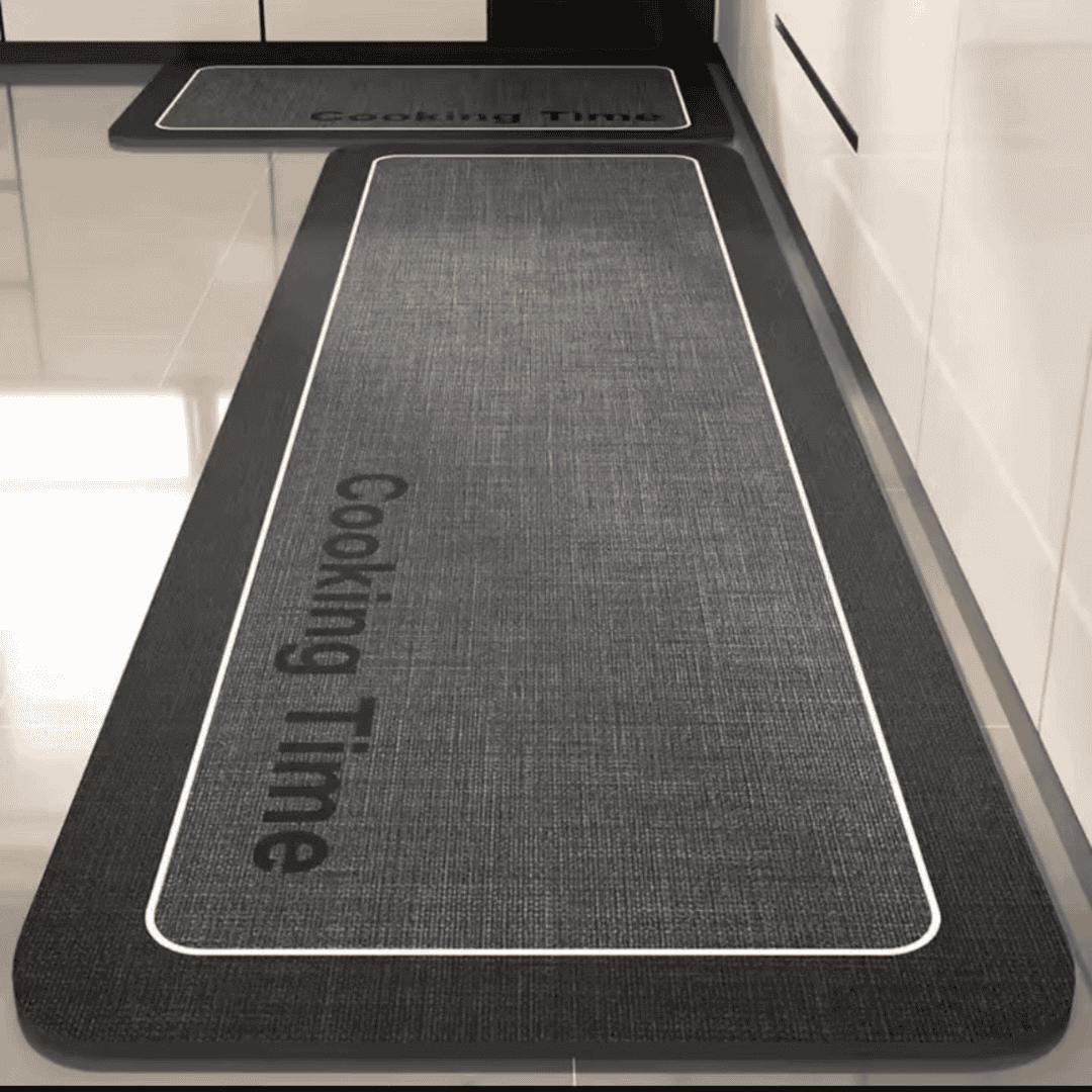 The mats feature a durable top layer and a rubberized bottom that prevents slipping, ensuring safety while cooking or washing dishes. Their cushioned design reduces fatigue, making them ideal for long hours spent in the kitchen. Easy to clean and designed to last, these mats combine practicality with modern style.