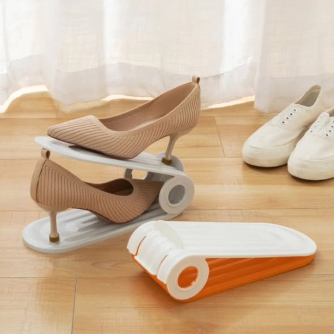 Whether you are organizing sneakers, heels, or flat sandals, this adjustable stand ensures your footwear stays in pristine condition. The non-slip surface prevents shoes from sliding off, while the sturdy plastic construction ensures the saver can handle heavier footwear without bending. Because they keep pairs together and visible, you will never lose a single shoe again. Sleek and incredibly practical, the Shoes slot space saver is the perfect way to transform a messy shoe rack into a neat, professional-looking display.