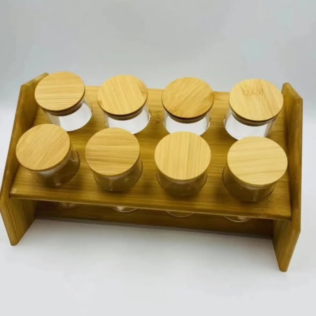 Sustainable Bamboo Stand: Durable and eco-friendly rack that keeps jars within reach.