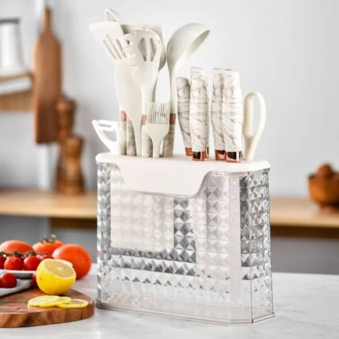 16-Piece Comprehensive Set: Includes bread knives, meat knives, scissors, spatulas, and more.