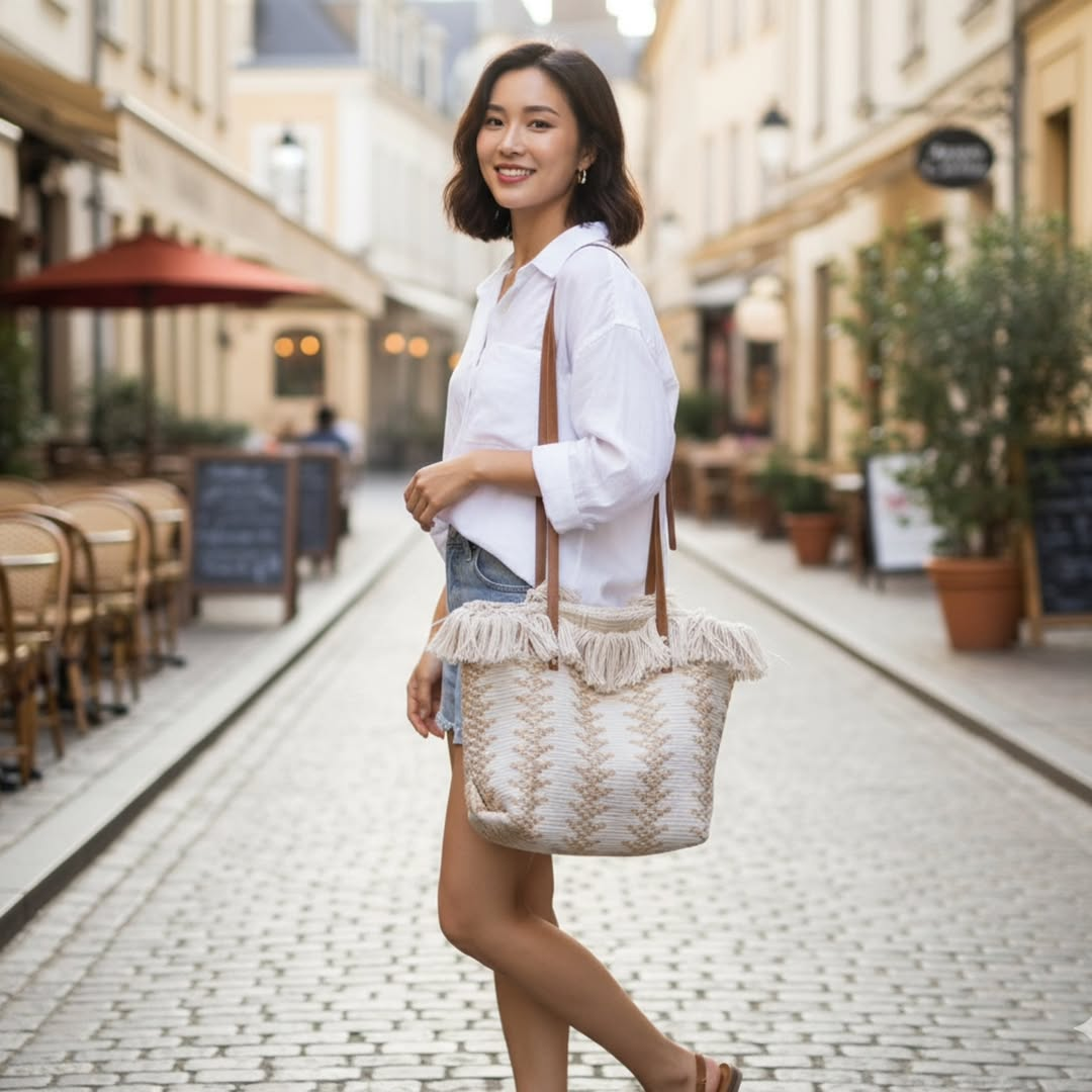 Whether you’re on vacation or out in the city, the Summer Tassel Tote Bag blends fashion, functionality, and durability perfectly.