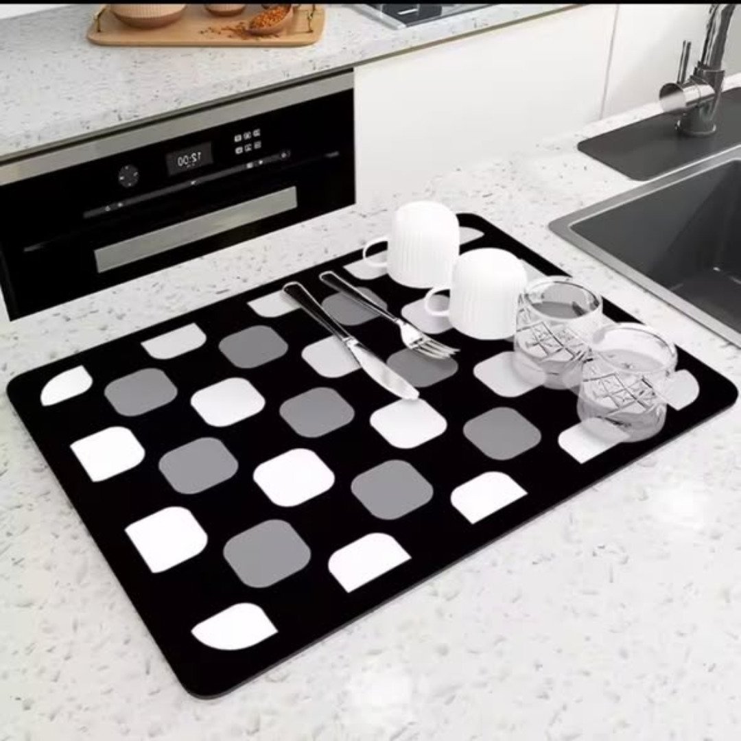 The Super Absorbent Nonslip Dish Drying Mat features a nonslip backing that grips firmly to tiles and marble, ensuring your dishes stay safe while drying. Unlike traditional fabric mats that stay wet and harbor odors, the Diatom Mud construction dries rapidly and is easy to keep clean. Available in a range of colors including black, dark grey, blue, beige, and stylish patterns, it adds a modern touch to any Nairobi kitchen while protecting your surfaces from water damage.