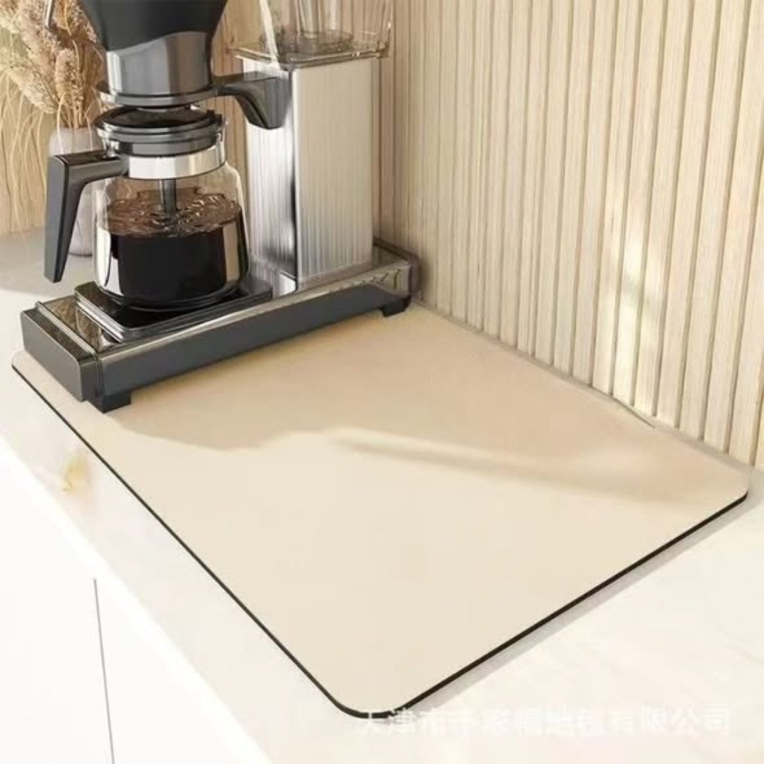 Protect your countertops and dry your dishes faster with the Super Absorbent Nonslip Dish Drying Mat. This Super Absorbent Nonslip Dish Drying Mat is crafted from premium Diatom Mud rubber, a material known for its incredible ability to soak up moisture and evaporate it quickly. Measuring 40*50 cm, it provides a generous surface for drying plates, glassware, and pots without the need for a bulky wire rack.