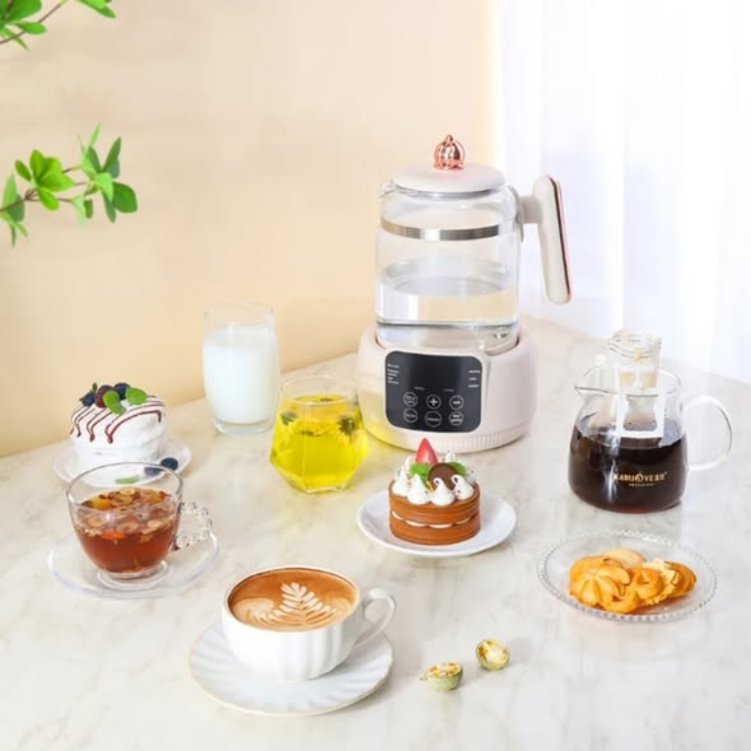 Designed for both home and office use, the kettle boasts a sleek, modern aesthetic that looks great on any countertop. The digital display provides real-time temperature feedback, ensuring you achieve the perfect heat for your specific drink every time. With its high power output, it brings a full 2 liters of water to a boil in minutes, saving you time during busy mornings. Equipped with auto-shutoff and boil-dry protection, this temperature-regulating kettle offers the perfect combination of precision, safety, and modern convenience.