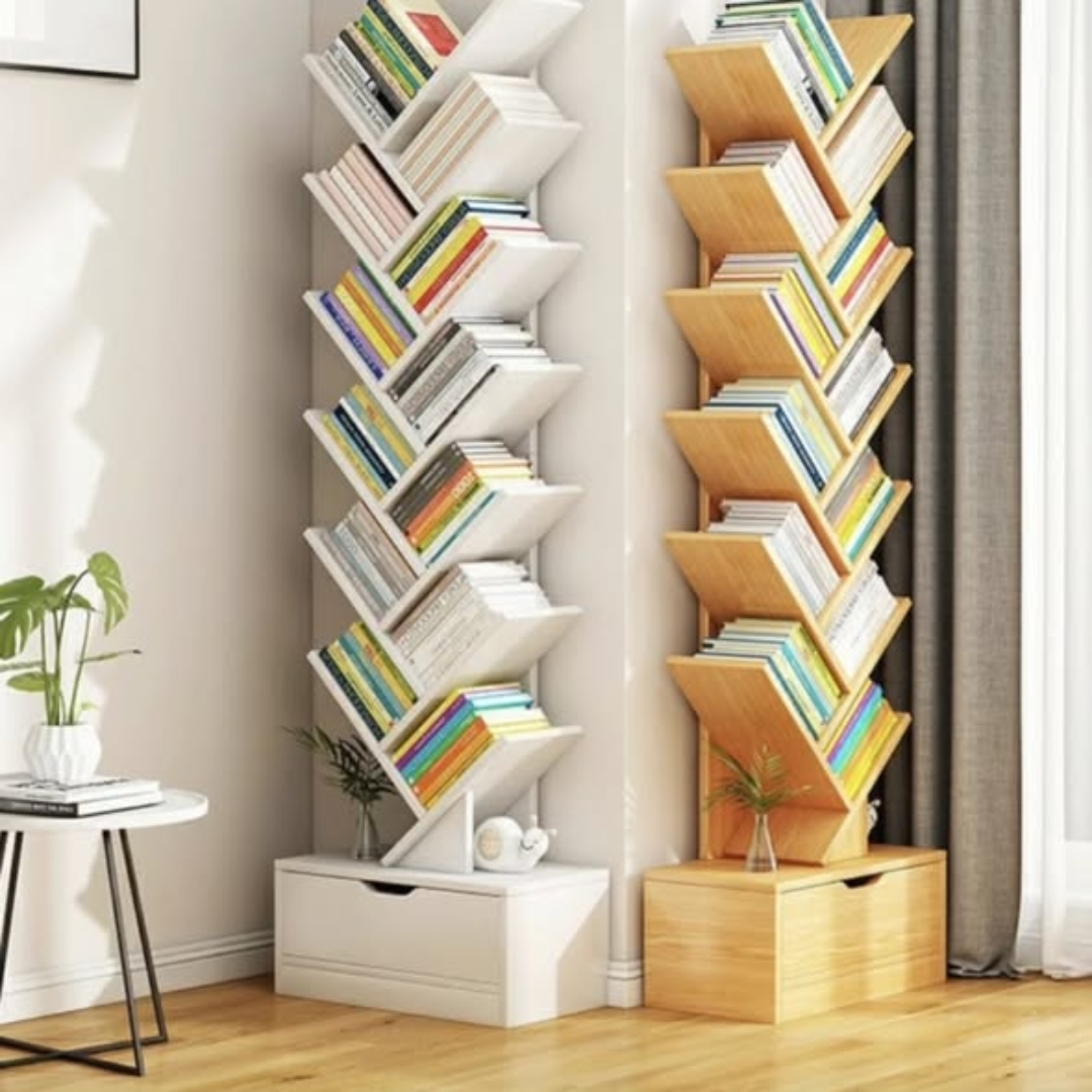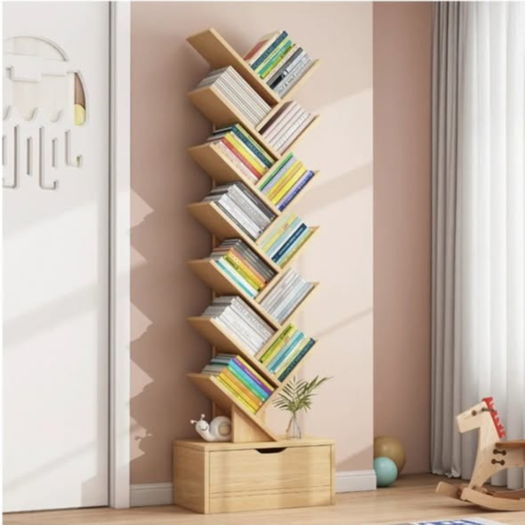 Elevate your library with the Tree Bookshelf. Space-saving, light brown wood design. Buy today for fast delivery in Nairobi!