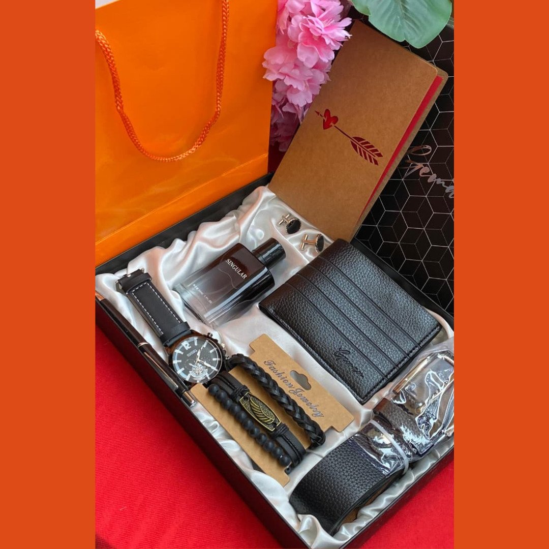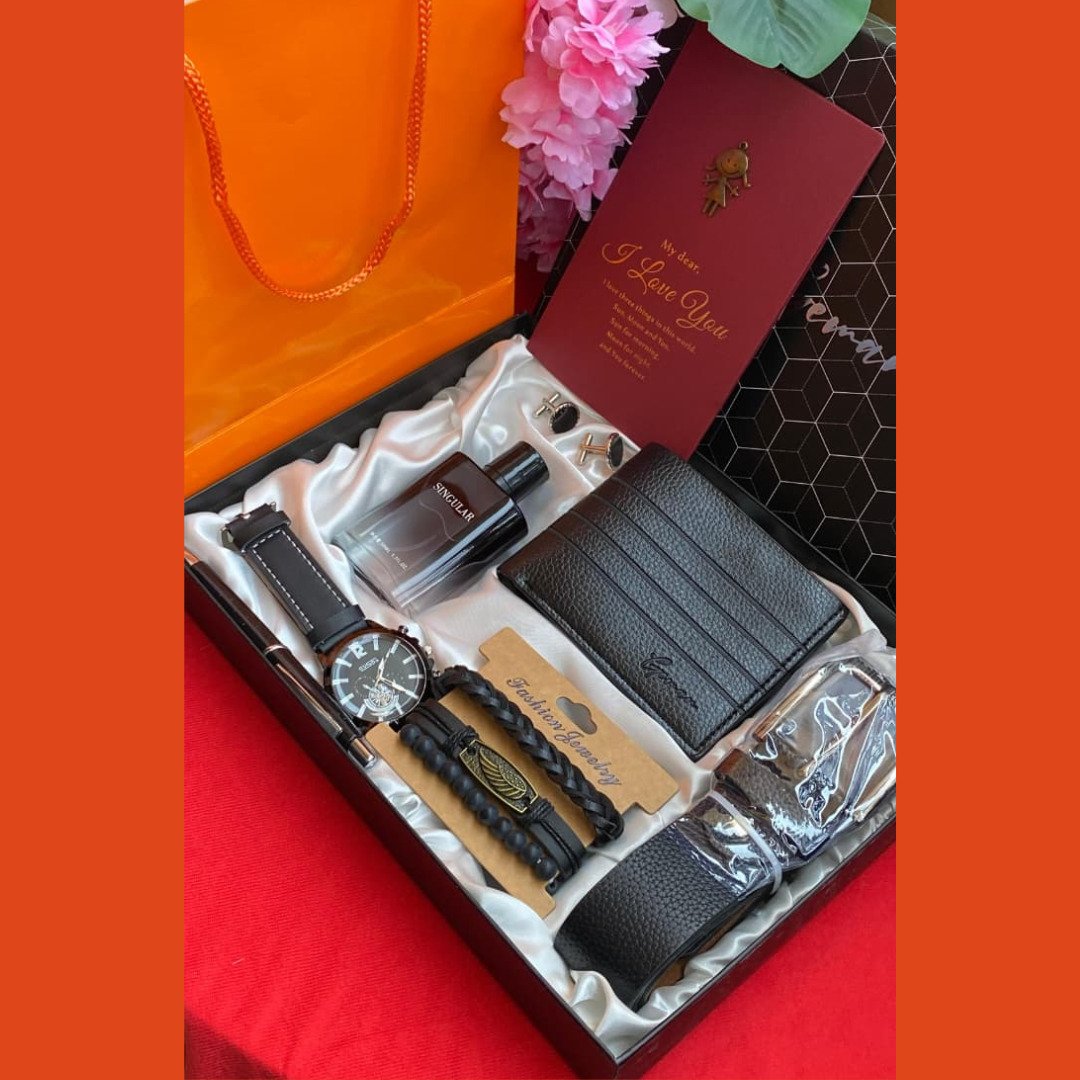 The Valentines Men Gift Set Luxury Collection offers an expansive array of premium accessories for the man who appreciates the finer things in life. This Valentines Men Gift Set Luxury Collection is packed with essentials including a watch, belt, wallet, perfume, cufflinks, and bangles. By combining grooming, fashion, and jewelry, this set creates a complete lifestyle upgrade that covers every aspect of a modern man’s wardrobe.