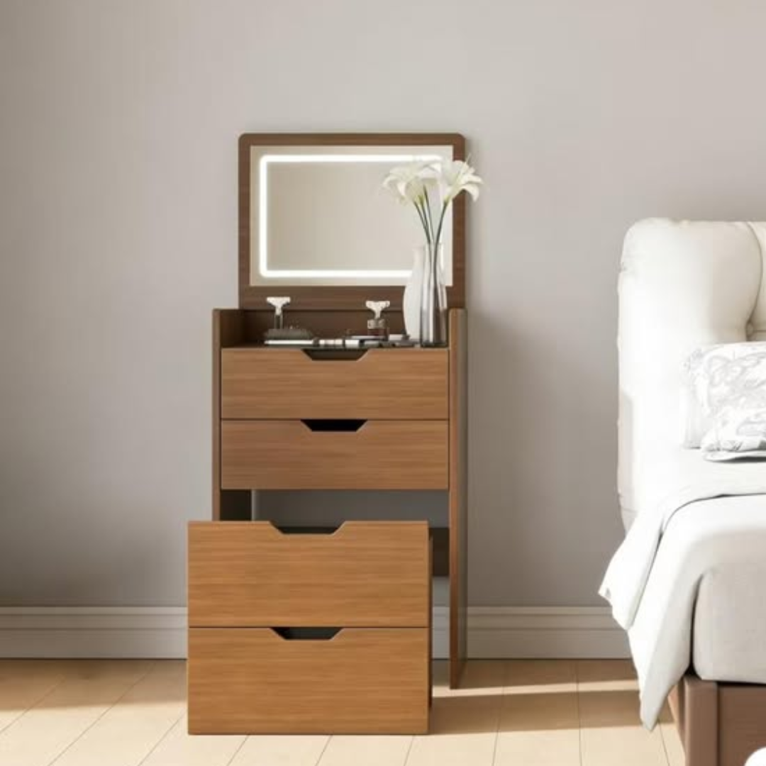 The “Compact Dressing Table” is perfect for “small bedrooms,” maximizing “space” with its “multi-functional” design. The “lighted mirror” provides the “magic” glow needed for precision makeup application, while the “Walnut” finish adds “simple elegance” to your “home decor.” Made from “Quality” materials, this vanity is “sturdy” and “durable,” built to be a centerpiece of your bedroom for years. For anyone in Nairobi looking for a “beautiful” and “versatile” vanity, this “Walnut” set offers the “best” blend of “luxury” and “neatness.”