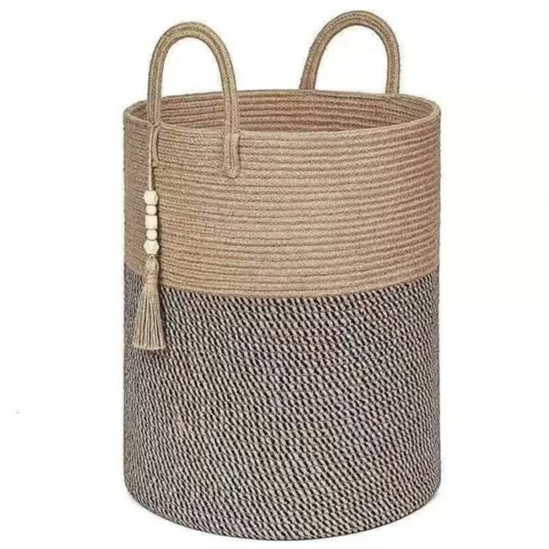 The Wooven decorative laundry/toys basket 38x38x50cm size is a versatile storage powerhouse designed to handle the heavy-duty organization needs of a busy household. This Wooven decorative laundry/toys basket 38x38x50cm features a tall, cylindrical profile that is perfect for tucking into corners of the bedroom, nursery, or laundry room. Crafted from high-quality, breathable fibers, it allows air to circulate through your stored items, which is essential for keeping laundry or plush toys fresh and odor-free. Its sturdy construction ensures it stands upright even when empty, maintaining a neat appearance at all times.