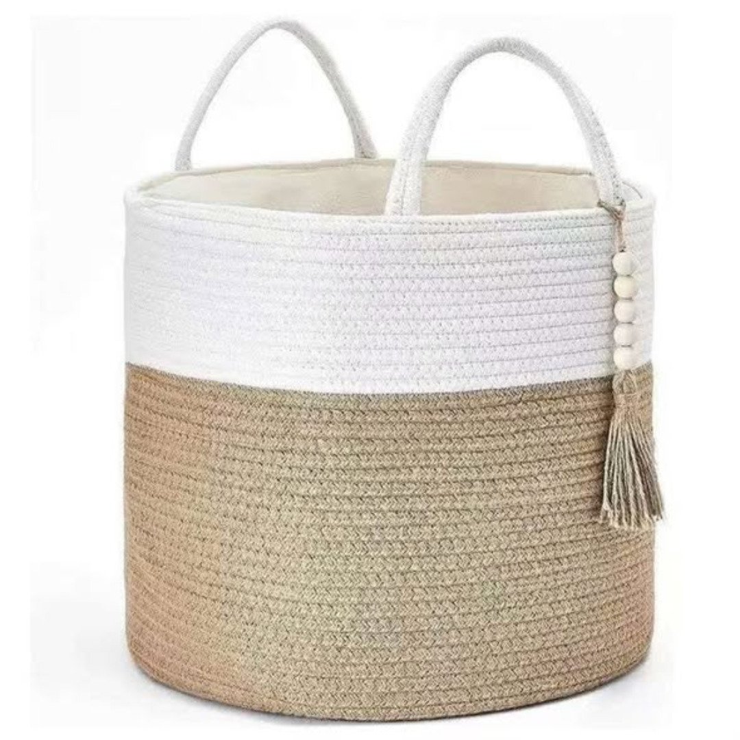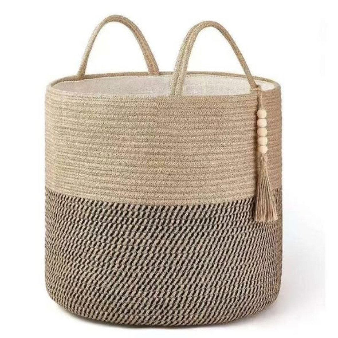 The Wooven decorative laundry/toys basket 40x40x35cm measuring 40x40x35cm offers a wider, shallower storage solution that is ideal for quick-access organization. This Wooven decorative laundry/toys basket 40x40x35cm is specifically designed for items like throw blankets, pillows, or frequently used toys that need to be within easy reach. Its wider diameter allows you to see the contents at a glance, making it a favorite for living rooms and play areas where visibility and ease of use are priorities. The artisanal woven texture adds a warm, organic feel to any space, bridging the gap between utility and decor.